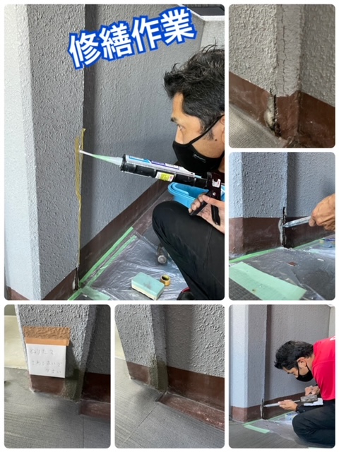 丁寧に養生をして、崩れている部分をキレイに取り除き修繕します。